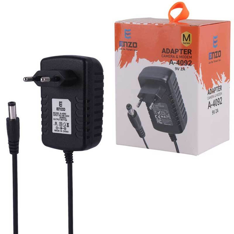 ۹ ولتوزن 400 گرم آداپتور: 9 ولت 2 آمپر ولتاژ خروجی : 9 ولتشدت جریان خروجی : 2 آمپر ولتاژ ورودی : 100-240 ولت استانداردها و گواهینامهها FC , CE , RoHSمناسب برای : دوربین مداربسته ، مودم و هر مصرف کننده 9 ولت تا جریان 2 آمپر