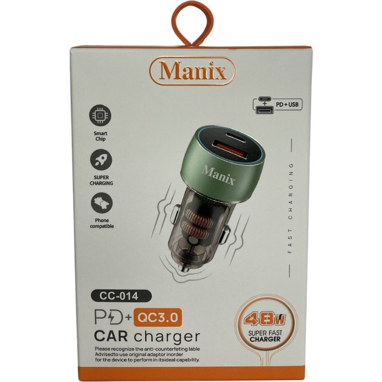 شارژر فندکی 48 واتی MANIX مدل CC-014، همراه همیشگی شما در سفرها و جادهها! با قابلیت شارژ سریع، دستگاههای شما همیشه آماده به کار خواهند بود. طراحی کمحجم و شیک آن بهراحتی در خودرو جا میگیرد. به منبع انرژی خود اعتماد کنید و تجربهای بیوقفه از شارژ را با ما تجربه کنید!