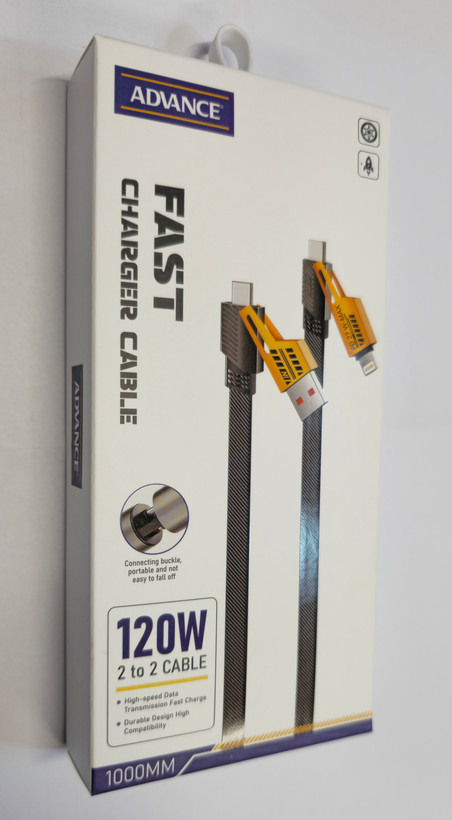 این کابل از فناوری شارژ سریع تا توان 120 وات پشتیبانی میکند و میتواند گوشی یا تبلت شما را در مدت کوتاهی شارژ کند. برای مثال، شارژ ۶۵٪ در کمتر از ۳۰ دقیقه برای بسیاری از گوشیهای امروزی ممکن است. همچنین کابل از انتقال داده نیز پشتیبانی میکند؛ به طوری که میتوانید فایلهای حجیم خود را تنها در چند ثانیه منتقل کنید. کابل فست شارژ چهار پورت ADVANCE 120w