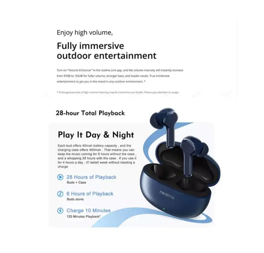 حذف نویز هوشمند ENC، میزان تاخیر صدا 88 میلی ثانیه، اپلیکیشن اختصاصی Realme Link